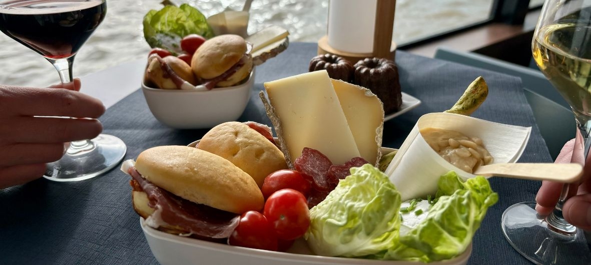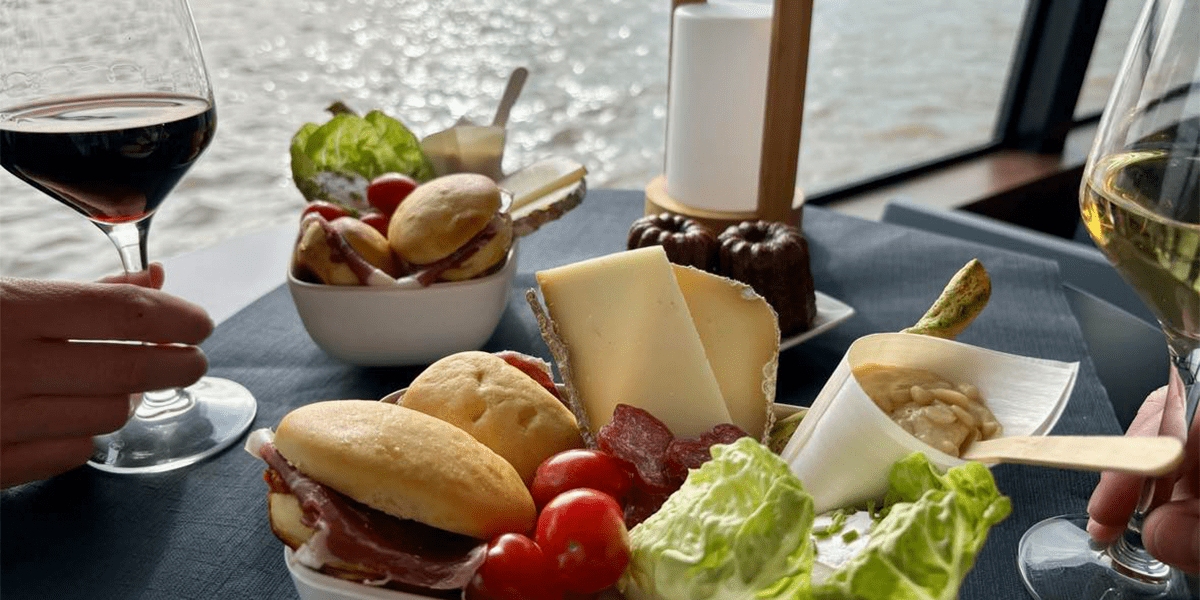 Embárquese en un paseo en barco y descubra Burdeos de una forma diferente. En familia, entre amigos o con colegas, disfrute de un momento de relajación y convivencia. Rodeado de música ambiente, nuestro equipo le ofrece una selección de vinos de Burdeos y una tabla de degustación: un surtido de aperitivos y un canelé bordelés.
